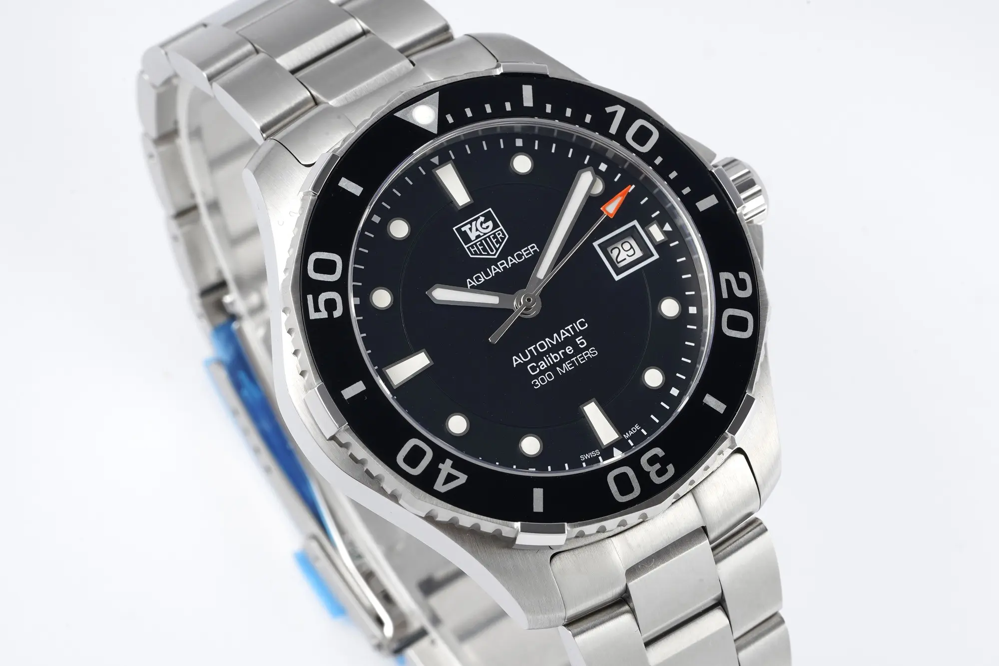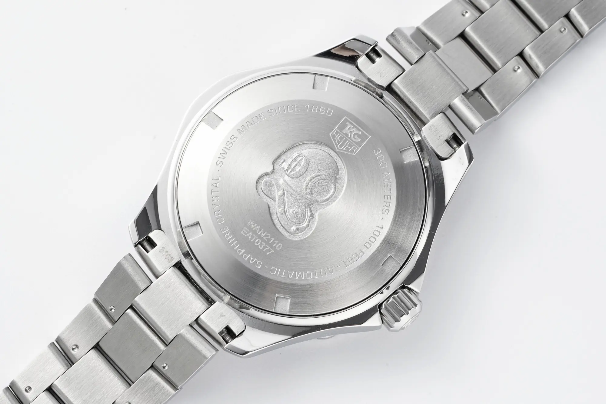 TAG Heuer – Silver Stainless Steel, Black Dial, Automatic Diver Style, 100m Waterproof — Premium 1:1 super clone. Case: 316L stainless steel case and bracelet. Crystal: Genuine sapphire crystal with AR coating. Movement: Swiss ETA movement (automatic). 12-month movement warranty. Free worldwide shipping on orders over $1,200.