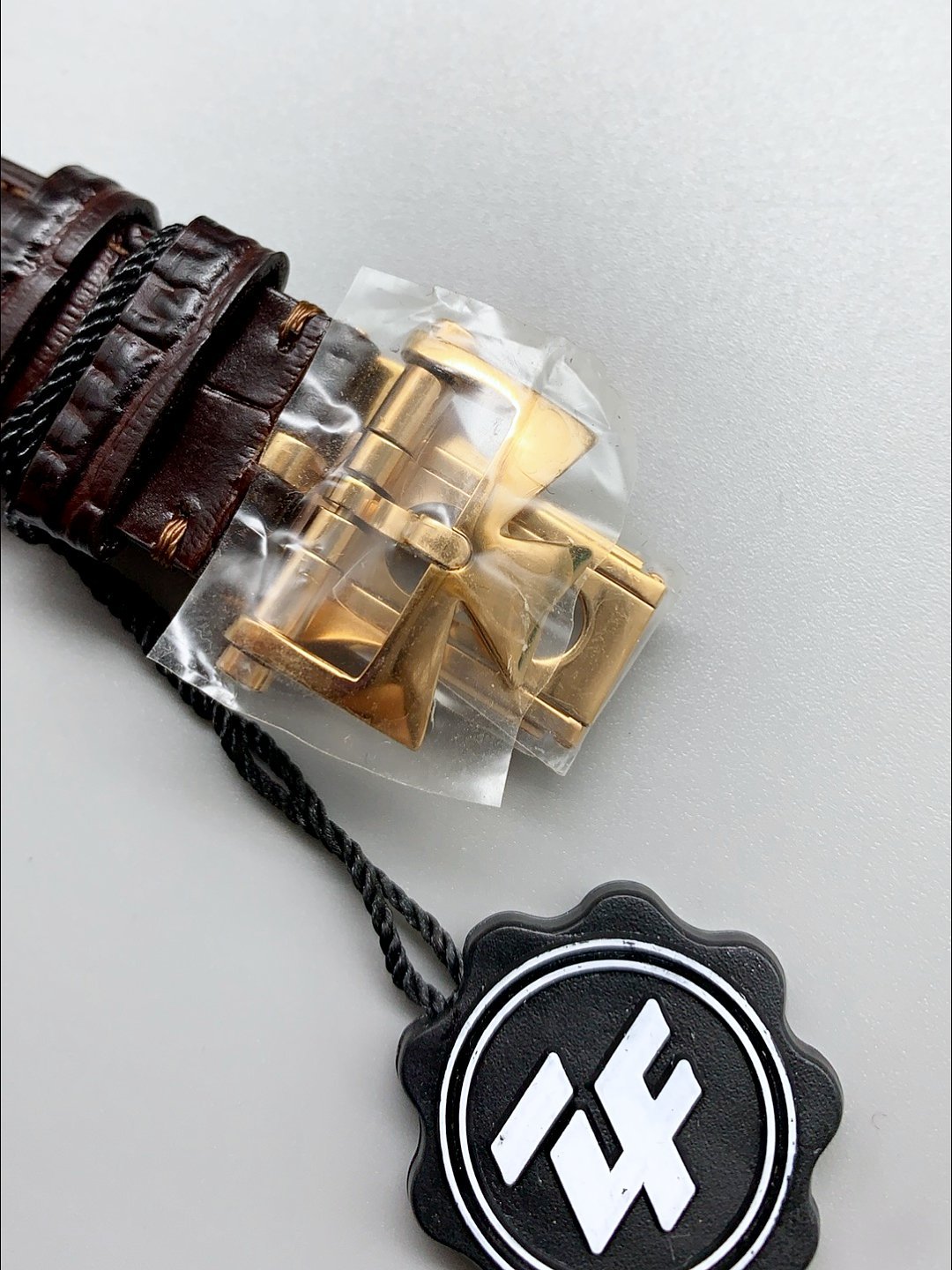 Genuine Leather Strap with Rose Gold Plated Tang Buckle complete with all markings/engravings as per the Originals