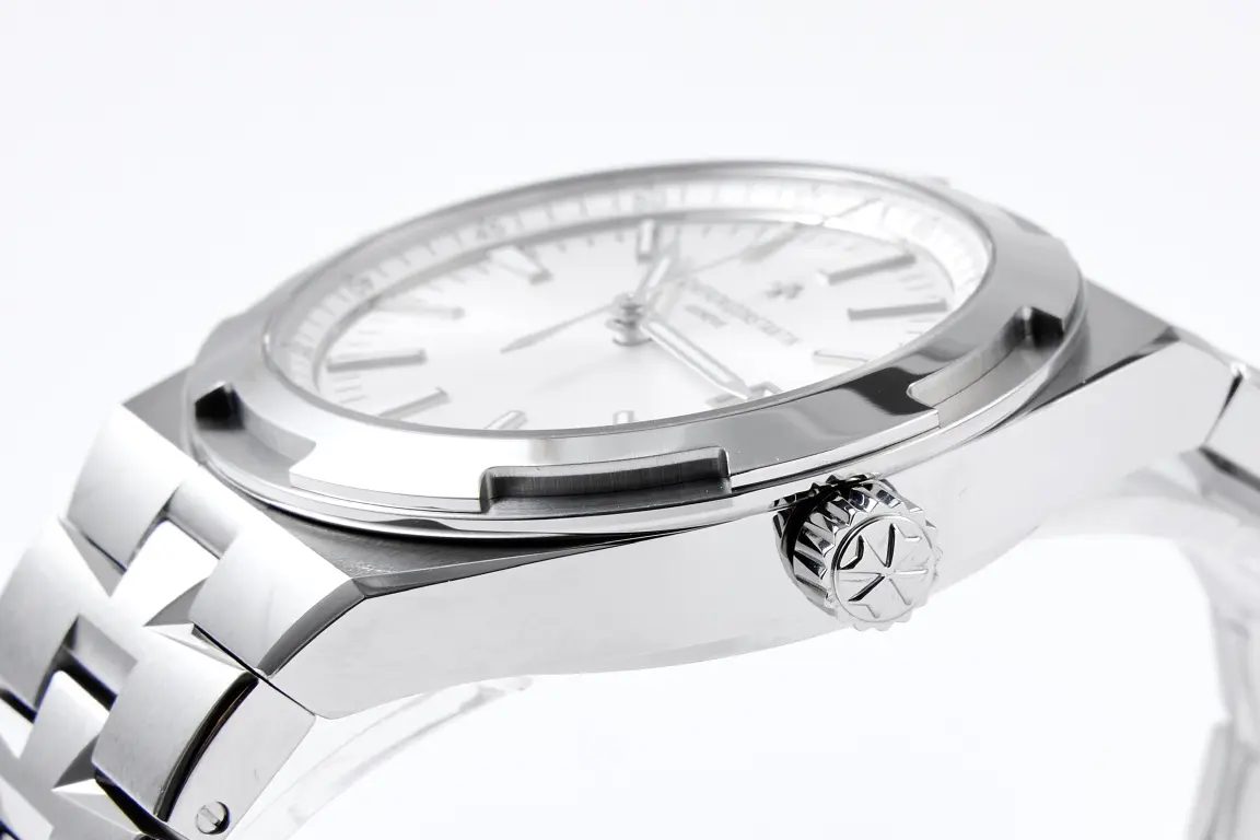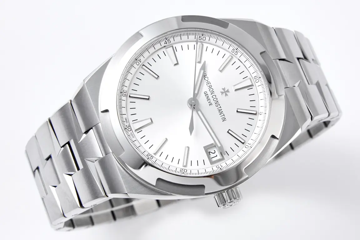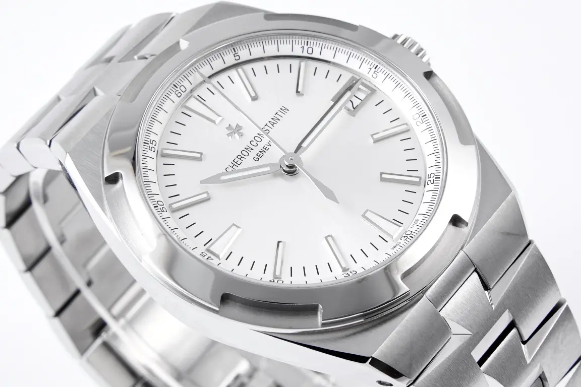 Vacheron Constantin Overseas 4500V Series – Silver Stainless Steel with Date Display — Premium 1:1 super clone. Case: 316L stainless steel or 18k gold case. Crystal: Genuine sapphire crystal with AR coating. Movement: Clone Cal. 5100 (28,800 bph, date, power reserve indicator). 12-month movement warranty. Free worldwide shipping on orders over $1,200.