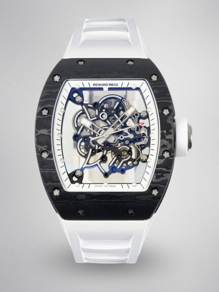 Richard Mille RM055 Skeleton Swiss Replica, Titanium Carbon Fiber Case, White Rubber Strap